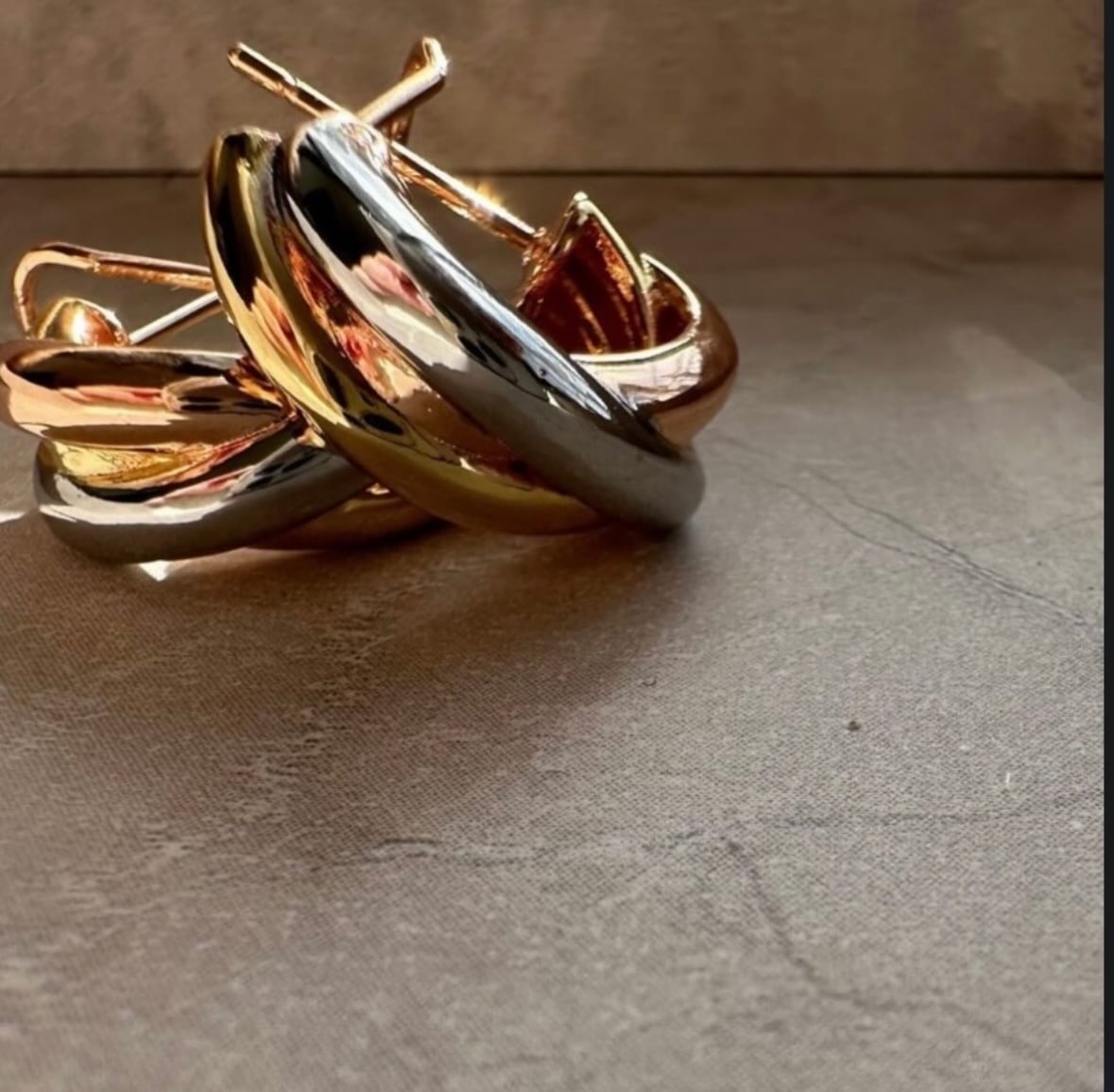 ゴールド、ローズゴールド、シルバーと3カラーがmixしたフープピアス❤︎